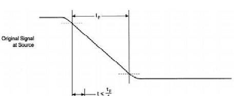 所示,假设信号从源端由高电平变为低电平传输出去,信号传输延时为Tp,(有的文档将沿跳变时间<=四分之一Tp 做为把信号线看成微波中传输线的条件)如果2Tp 小于信号沿的跳边时间的话,反射因素就不用考虑,因为不会影响电平的判断,只会使沿的跳变不规则。相反的如果2Tp 大于信号沿跳变的时间,那么反射会在发射端形成振铃现象,会影响到电平的判断,所以要考虑影响。信号线在介质中的传输速度为: